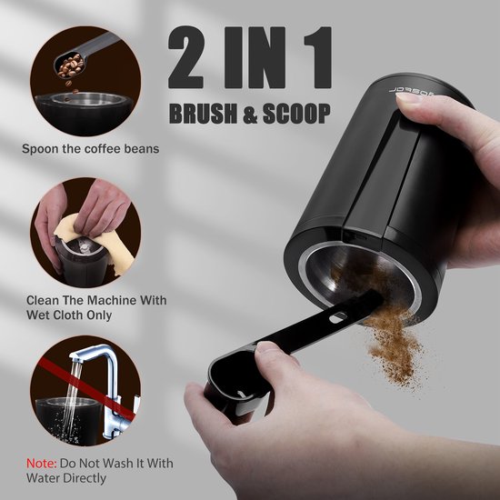 Hoogwaardige 304 messen van food-grade dubbel staal en een krachtige 200W motor zorgen voor continu malen van grof naar fijn om het oorspronkelijke rijke aroma en de olie van de koffieboon beter te behouden.